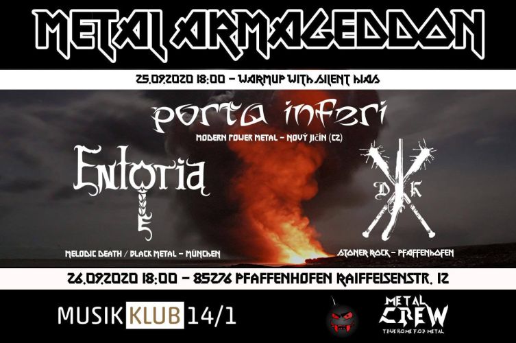 Together with the power metal band Porta Inferi from czech republic and the local stoner rock band Dunning Kruger we will heat you up open air at the Metal Armageddon in Pfaffenhofen.